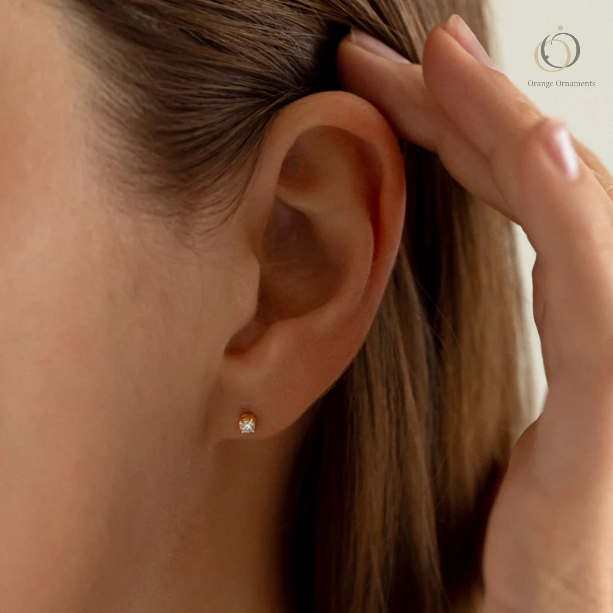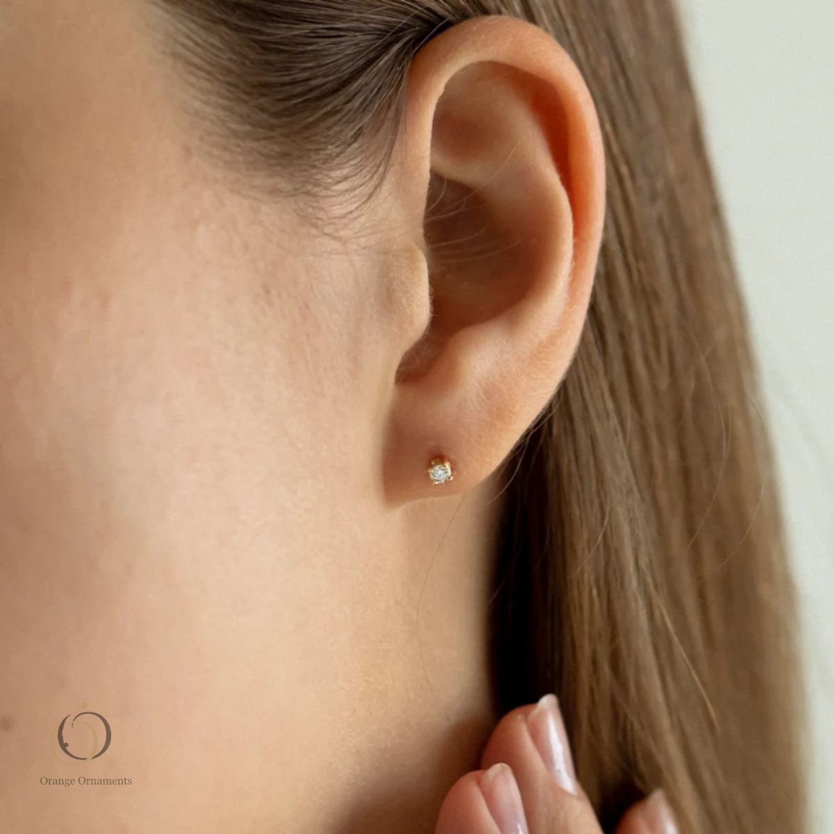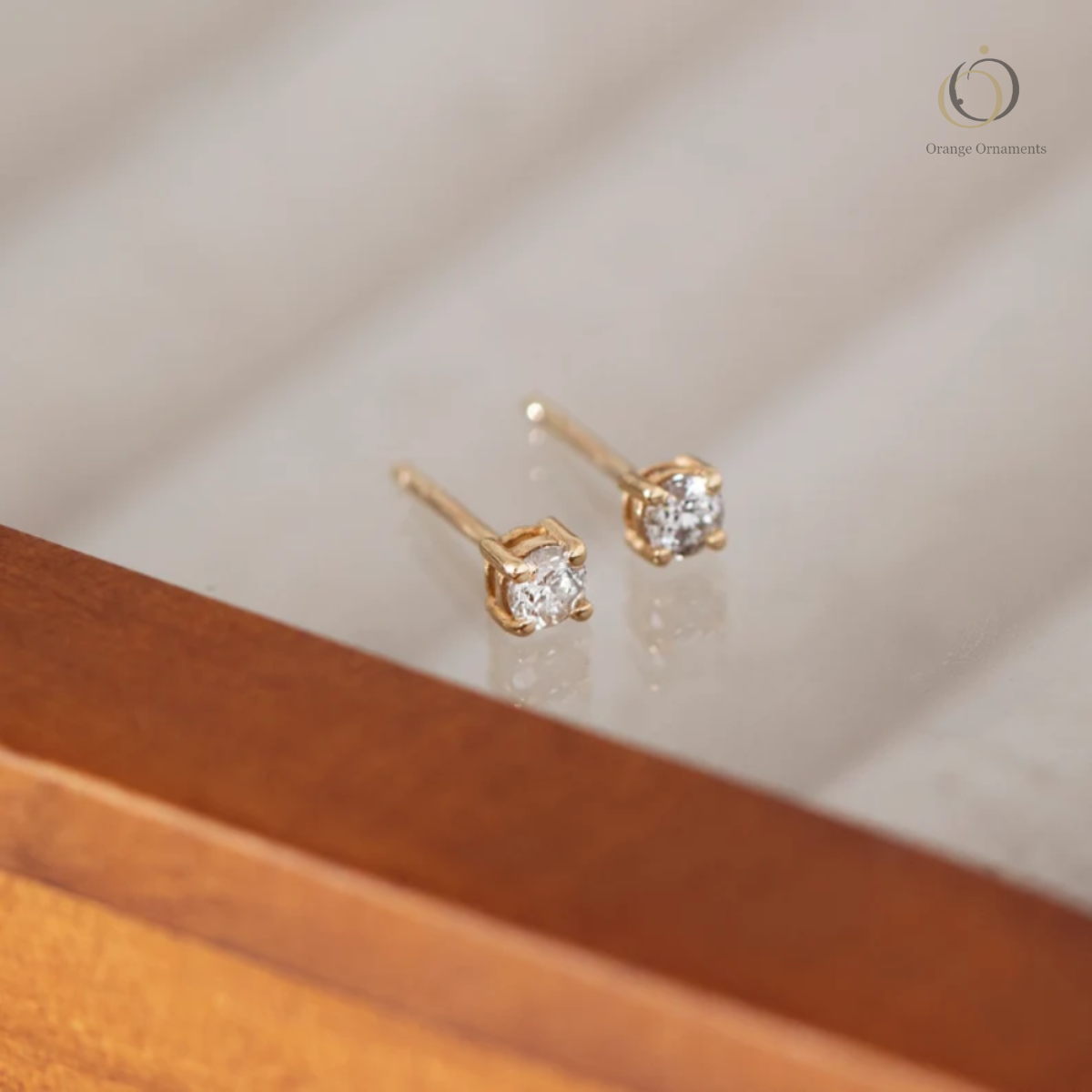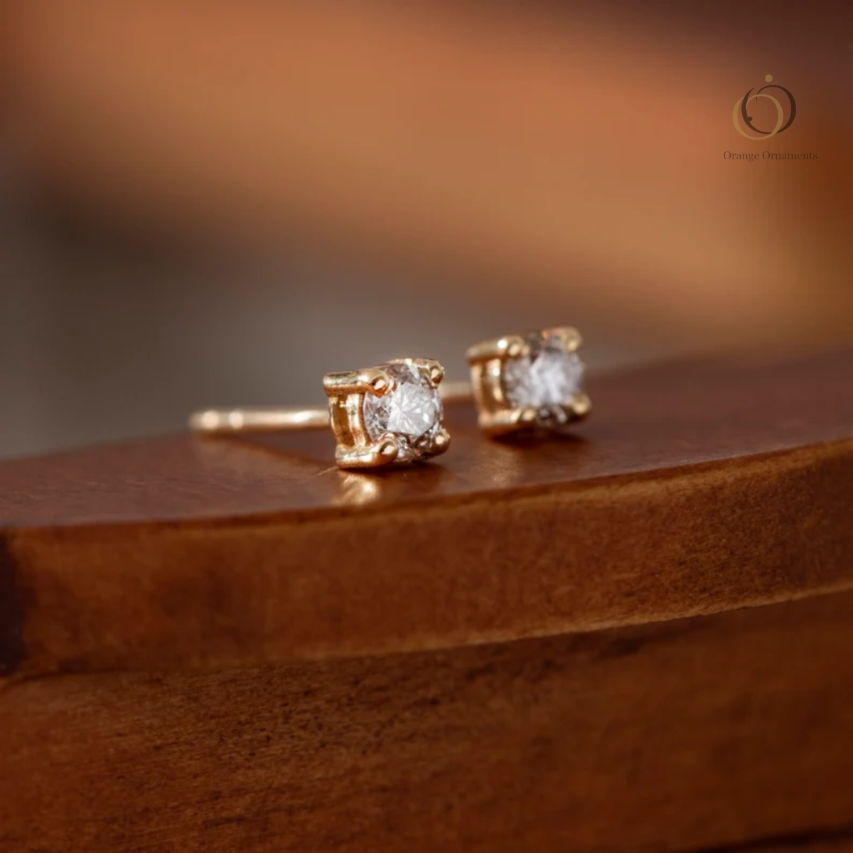 "Experience timeless allure with our 14k Solid Gold Round Cut Earrings. These exquisite solitaire studs radiate eternal brilliance, a symbol of enduring elegance for women of distinction."
