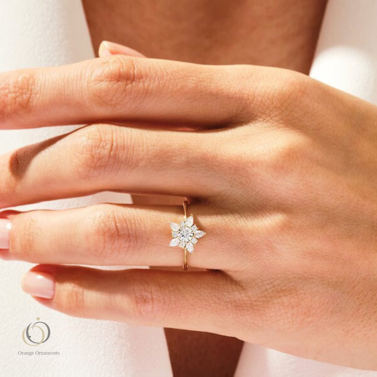 "Nature-Inspired Floral Diamond Engagement Ring in 14K Solid Gold"
