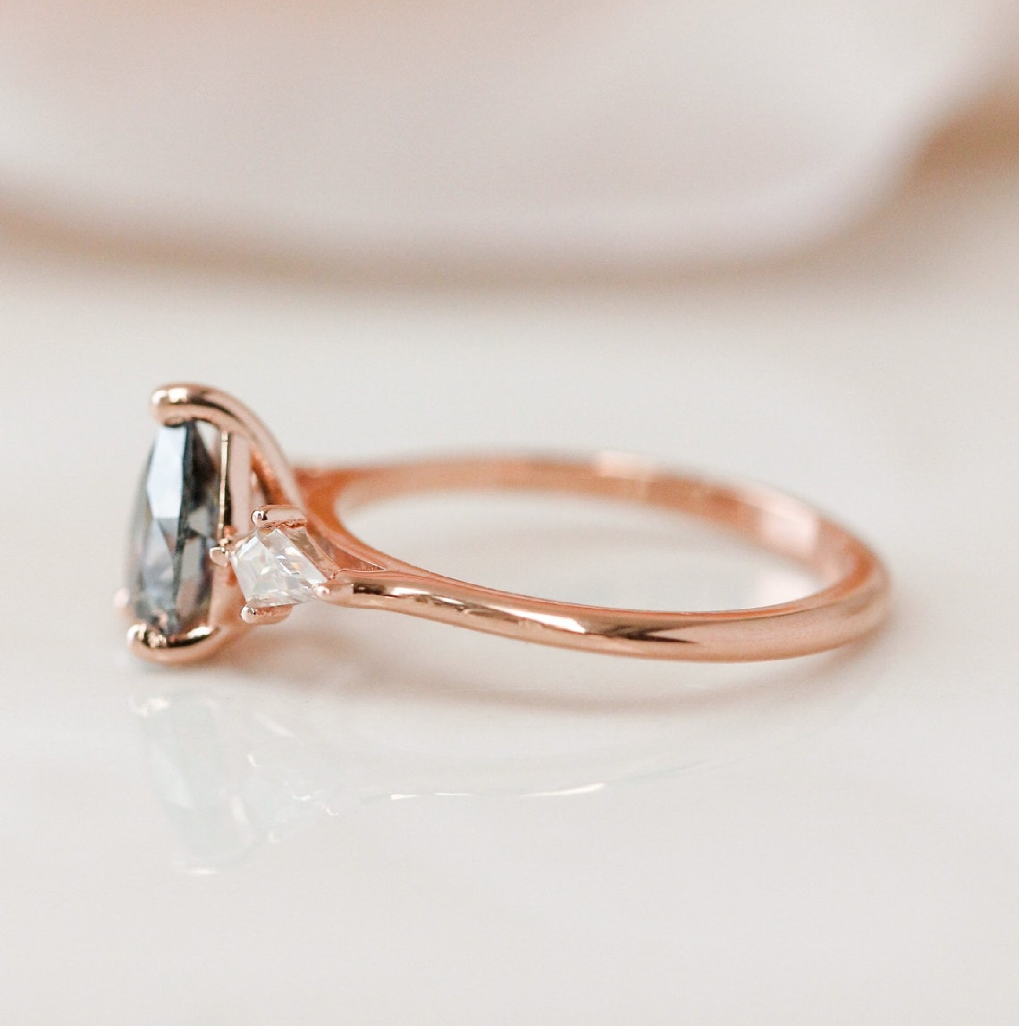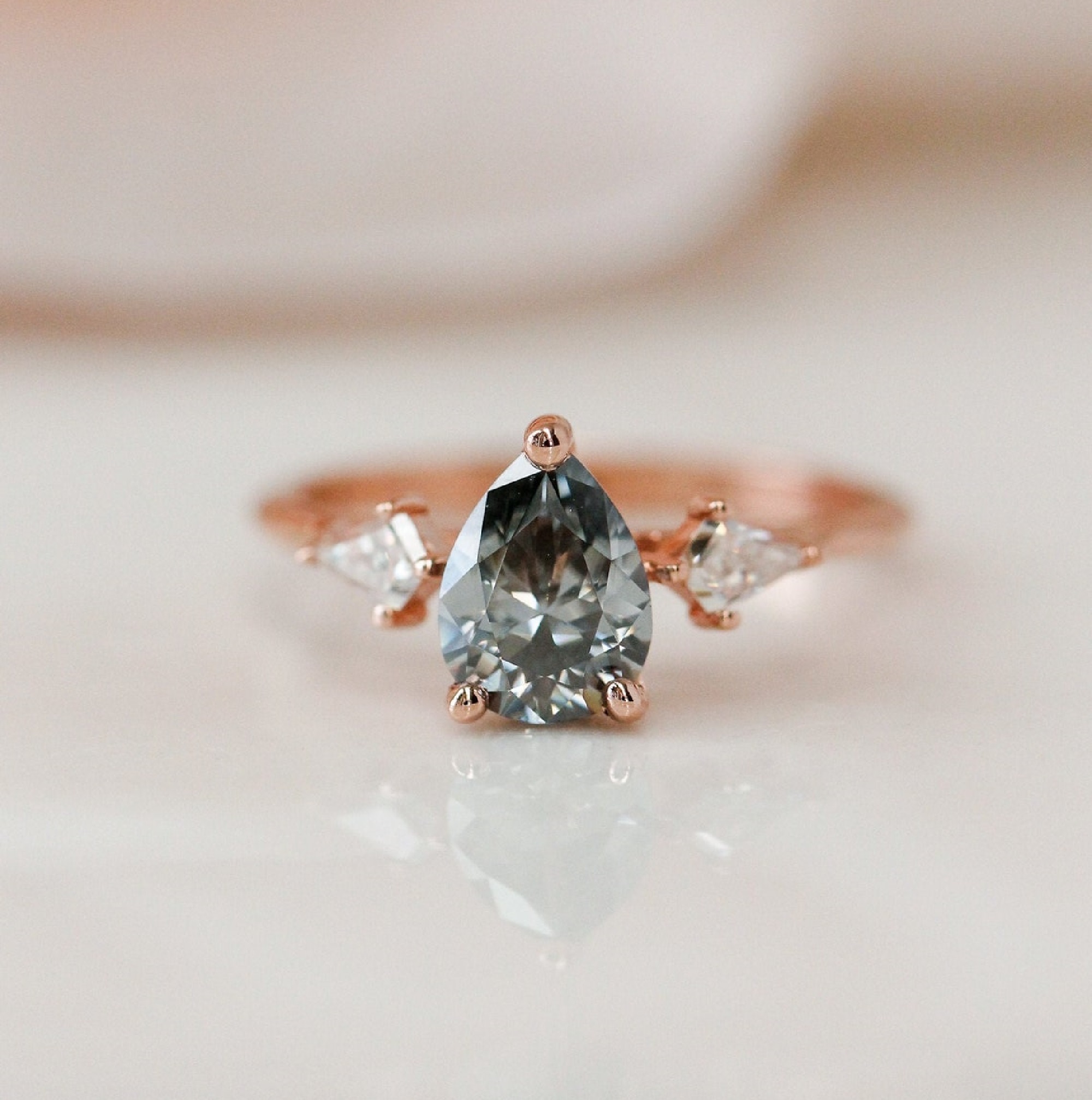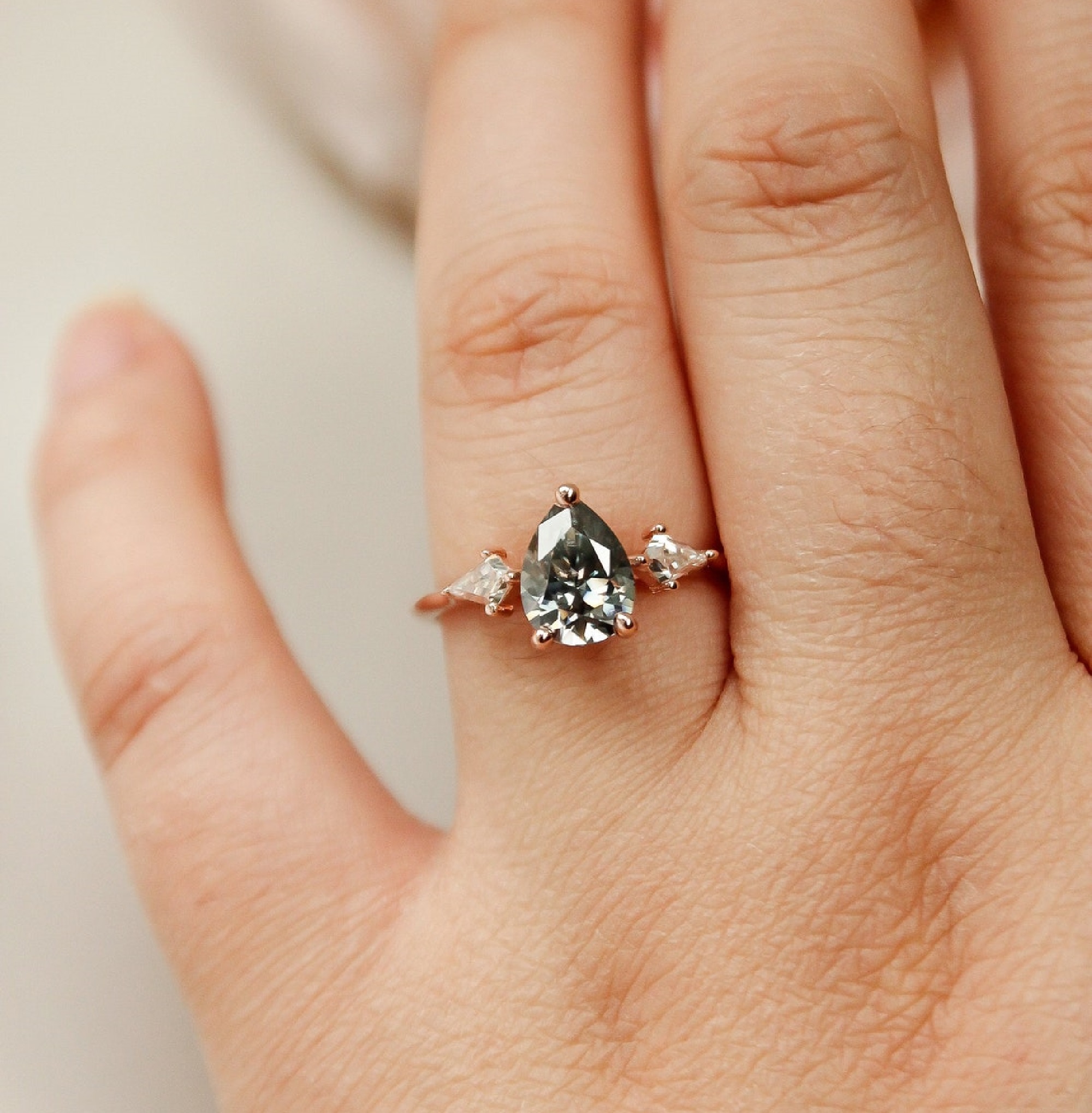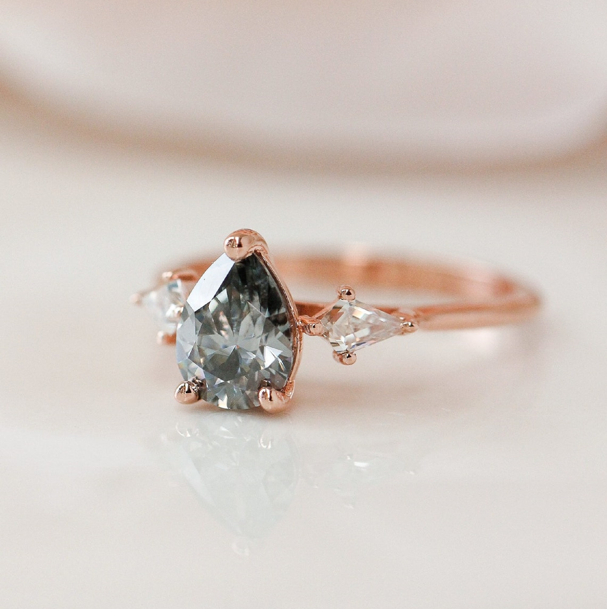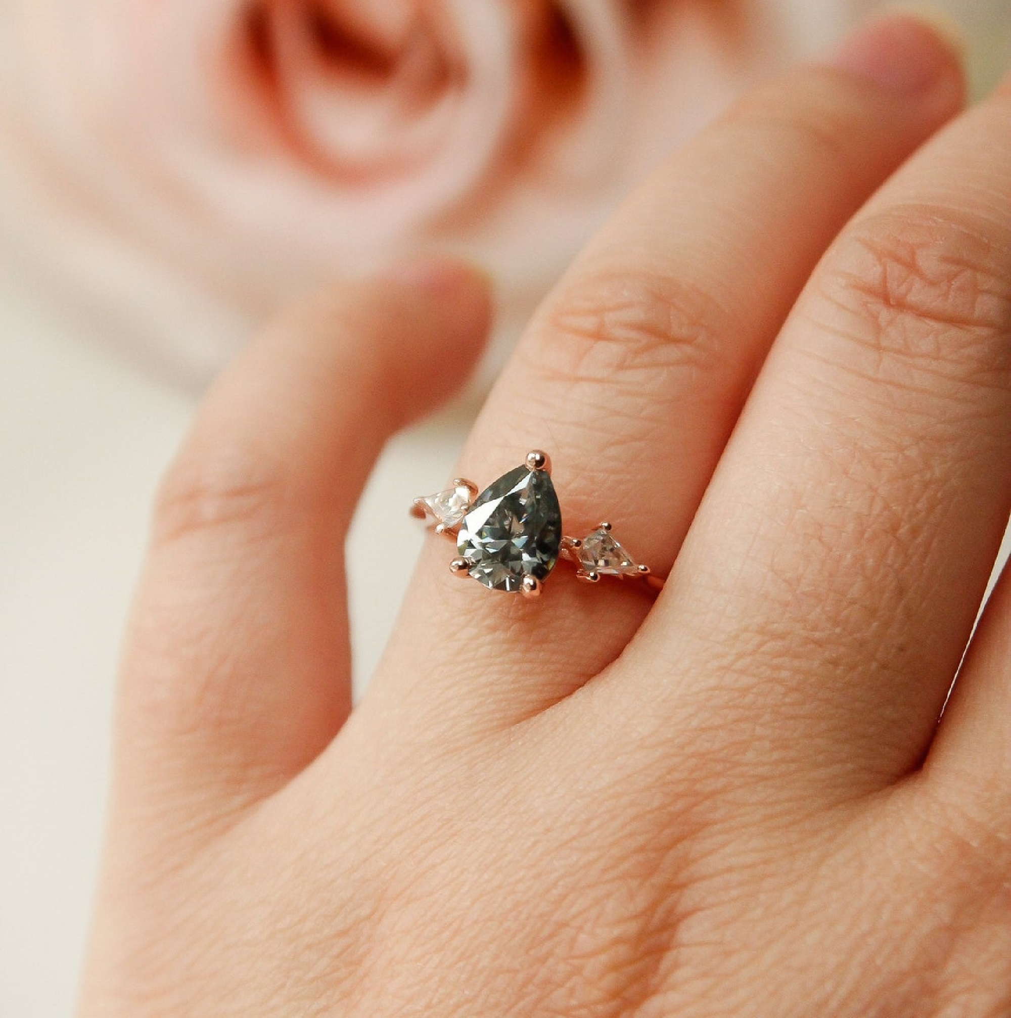 "2.10 Ct Grey Pear Cut Moissanite Cluster Engagement Ring"