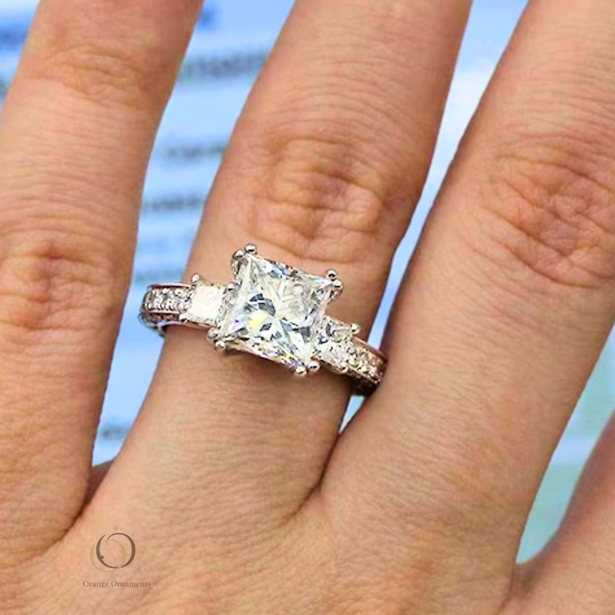 "Celebrate love with our 2.5 CT Princess Cut Moissanite Engagement Ring. Crafted in 14K white gold, this stunning piece is ideal for engagements, anniversaries, and timeless elegance."