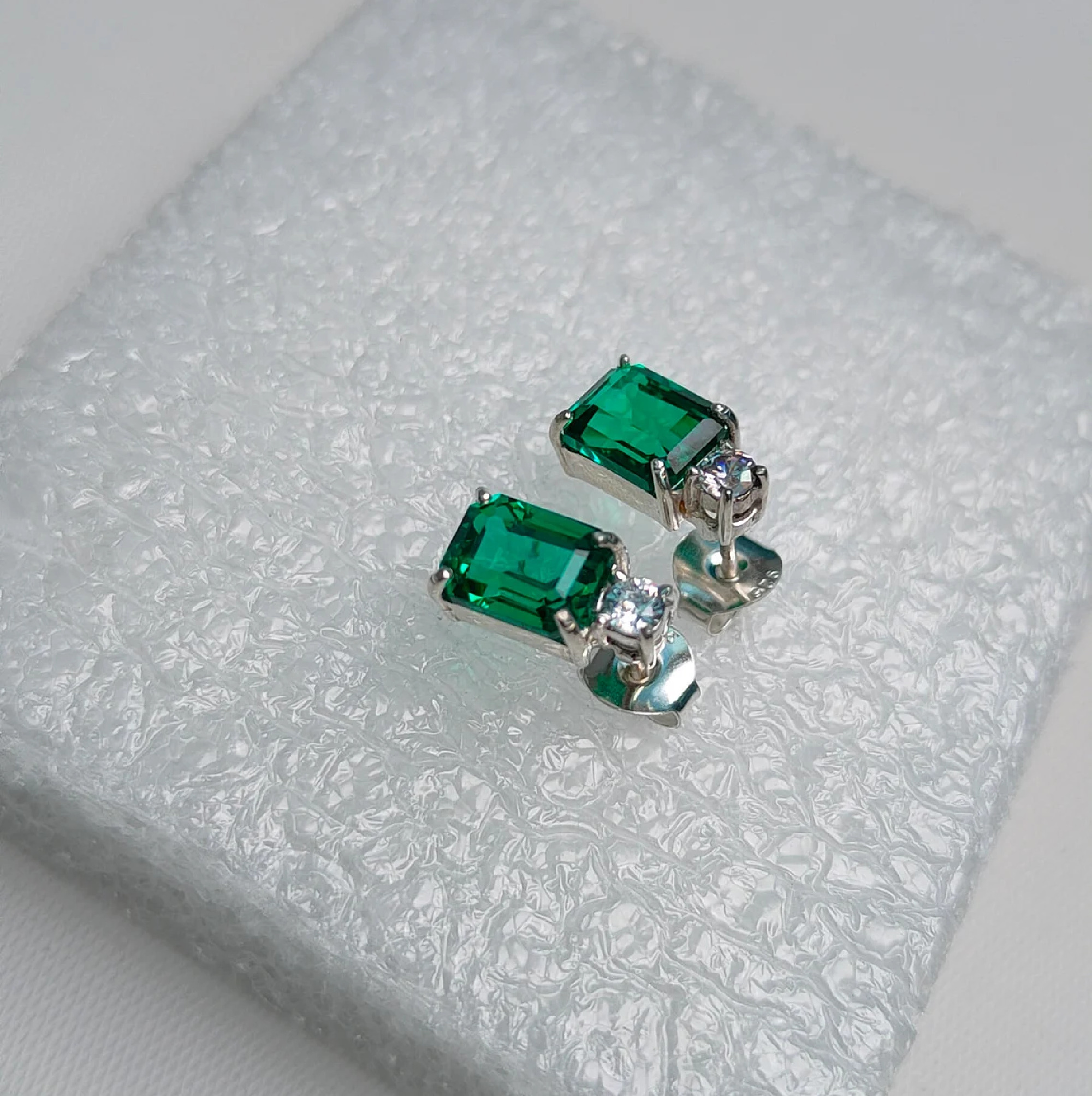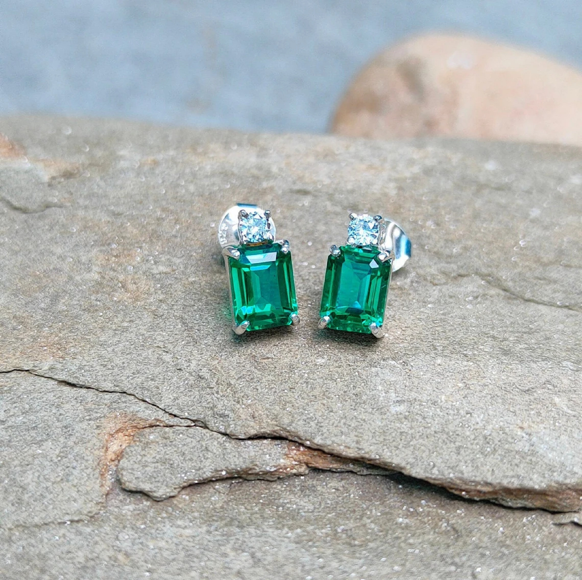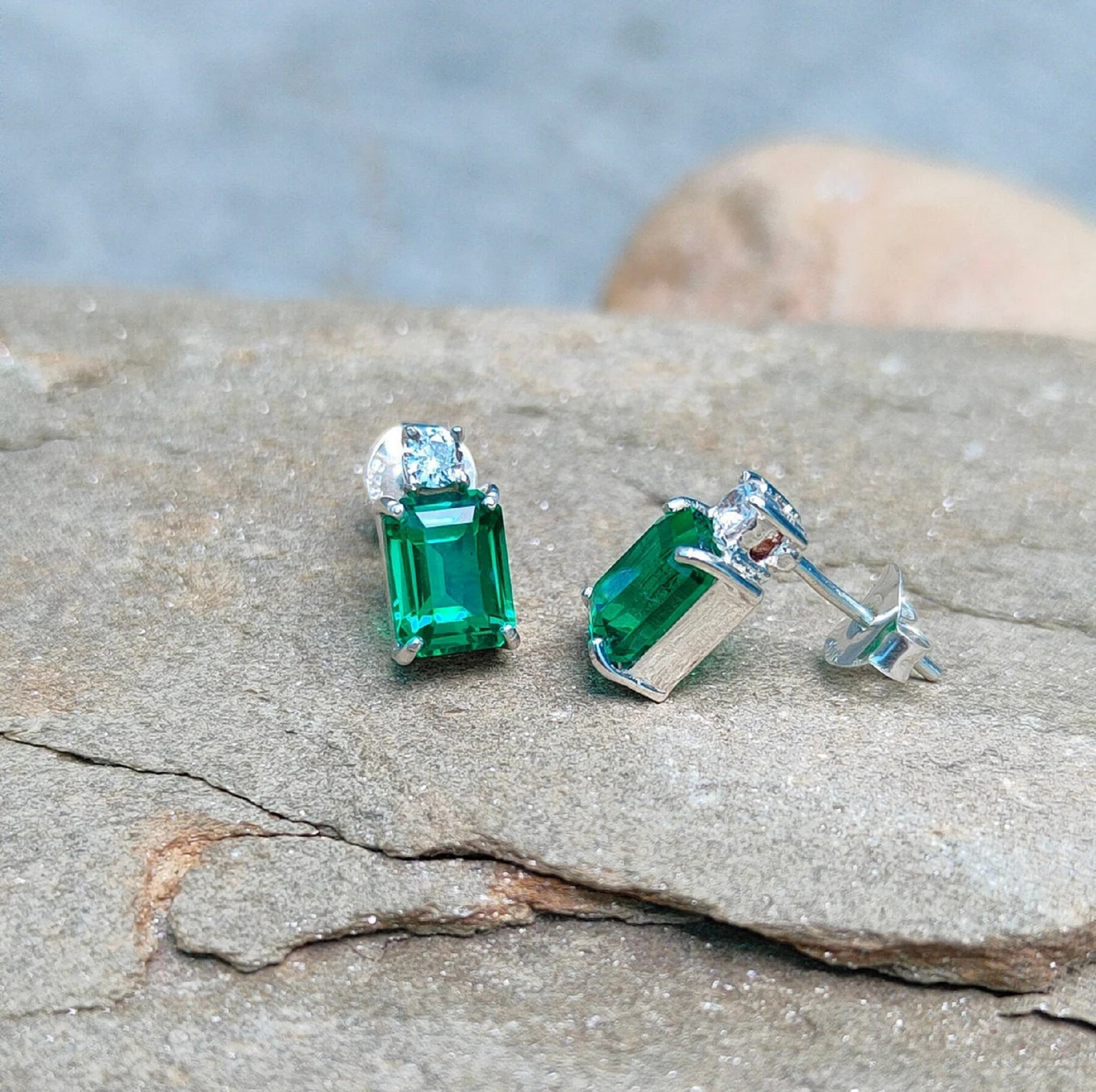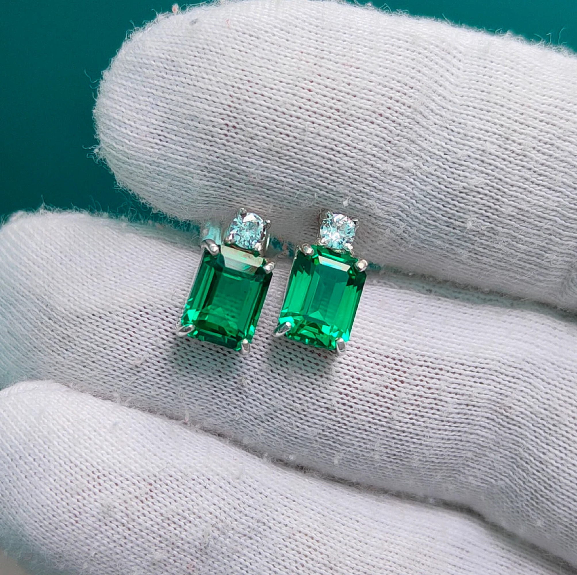 "Timeless Elegance: Emerald Cut Green Moissanite Diamond Stud Earrings"