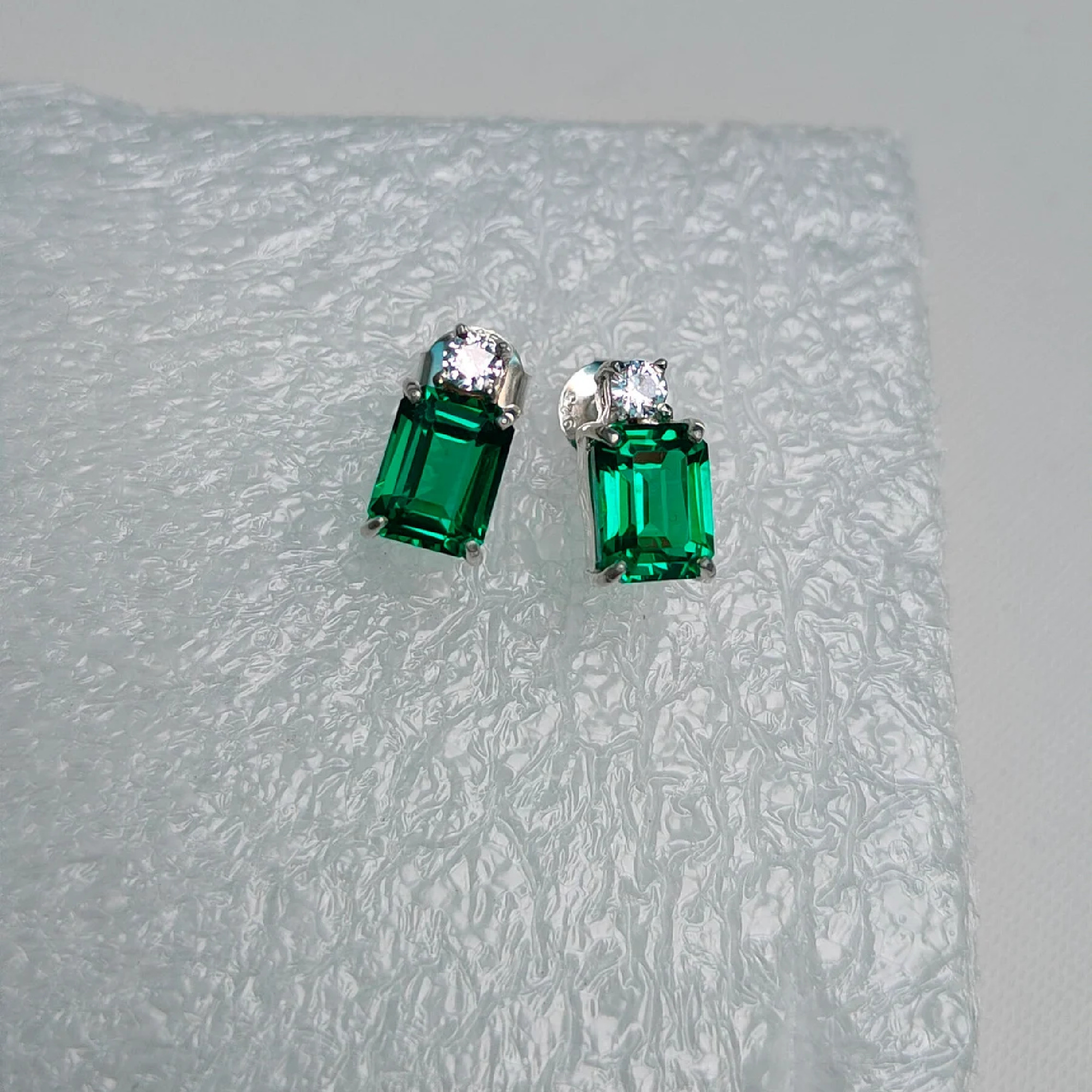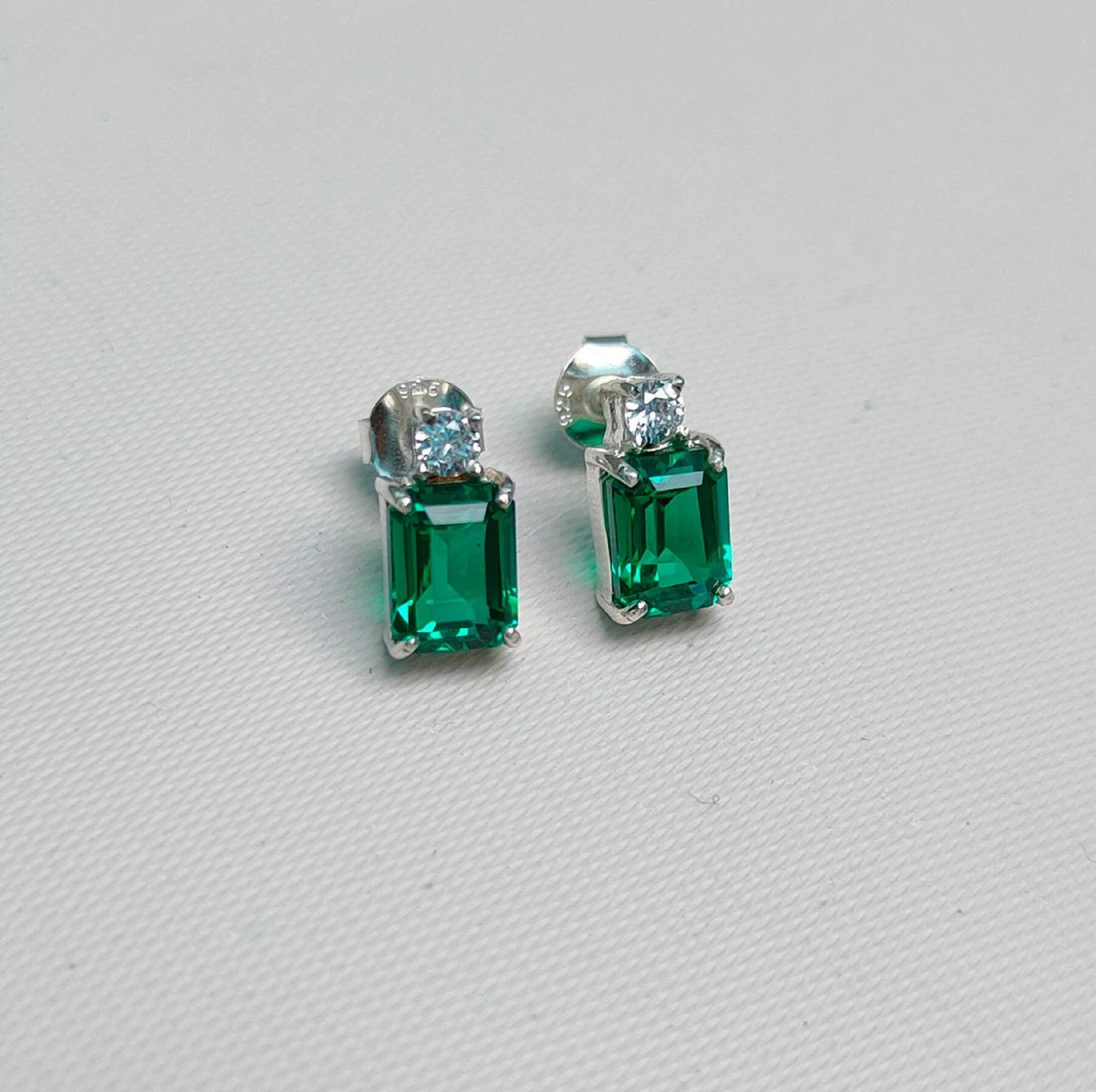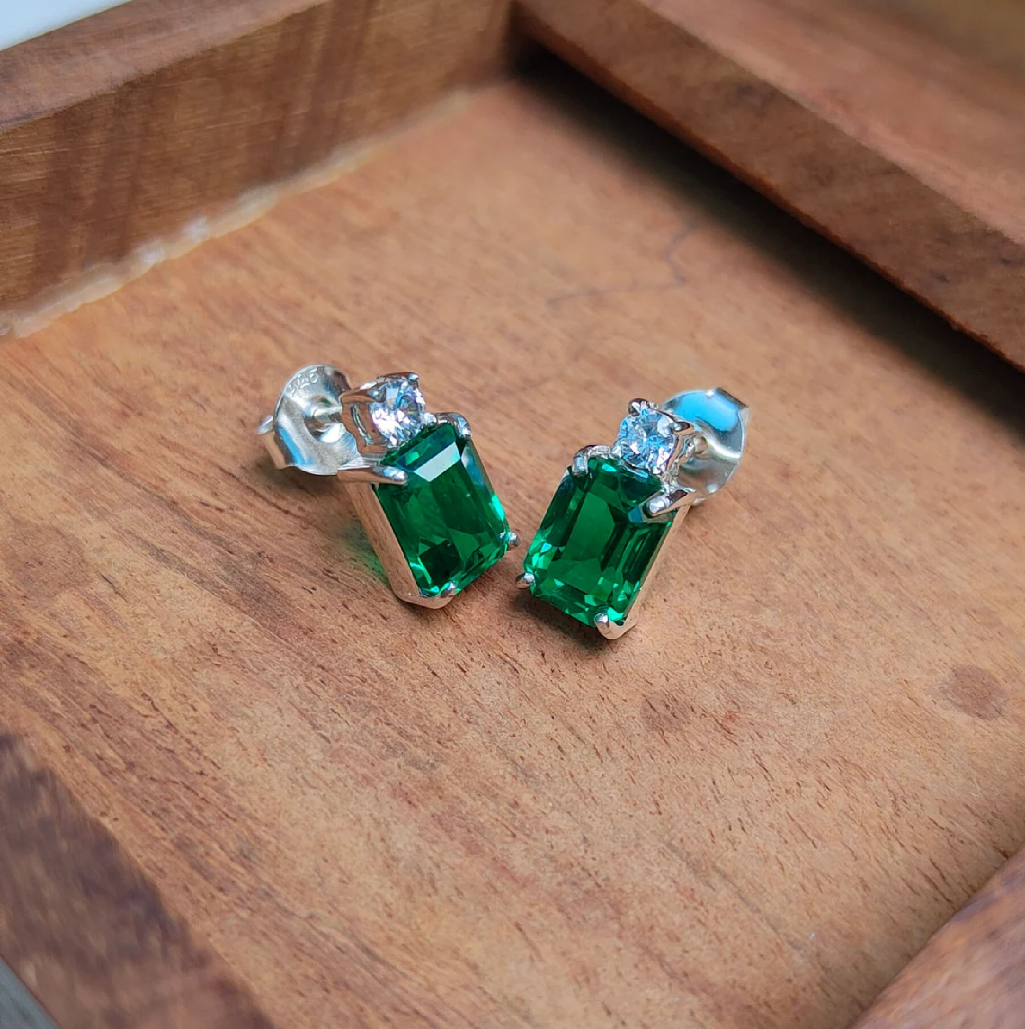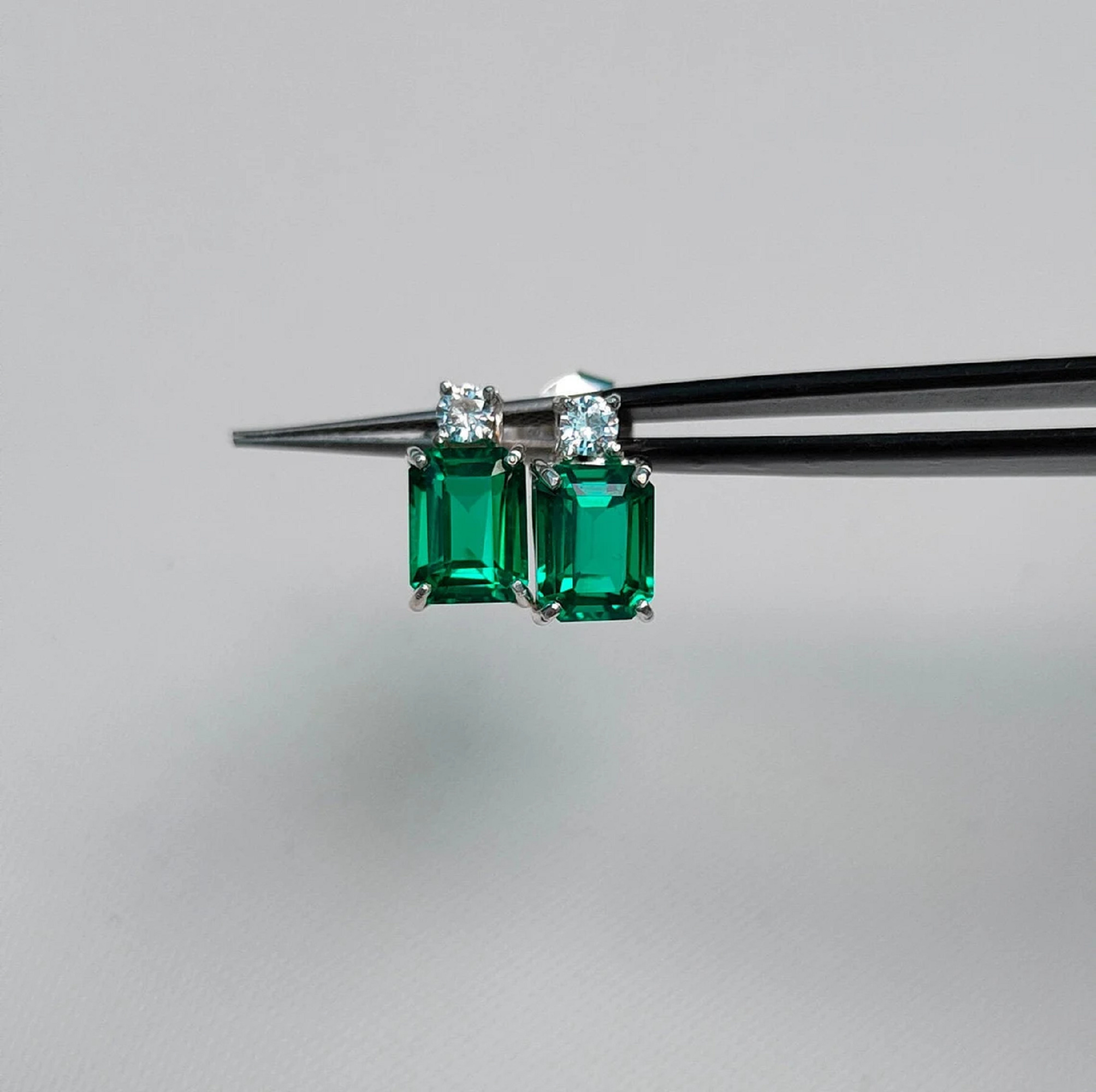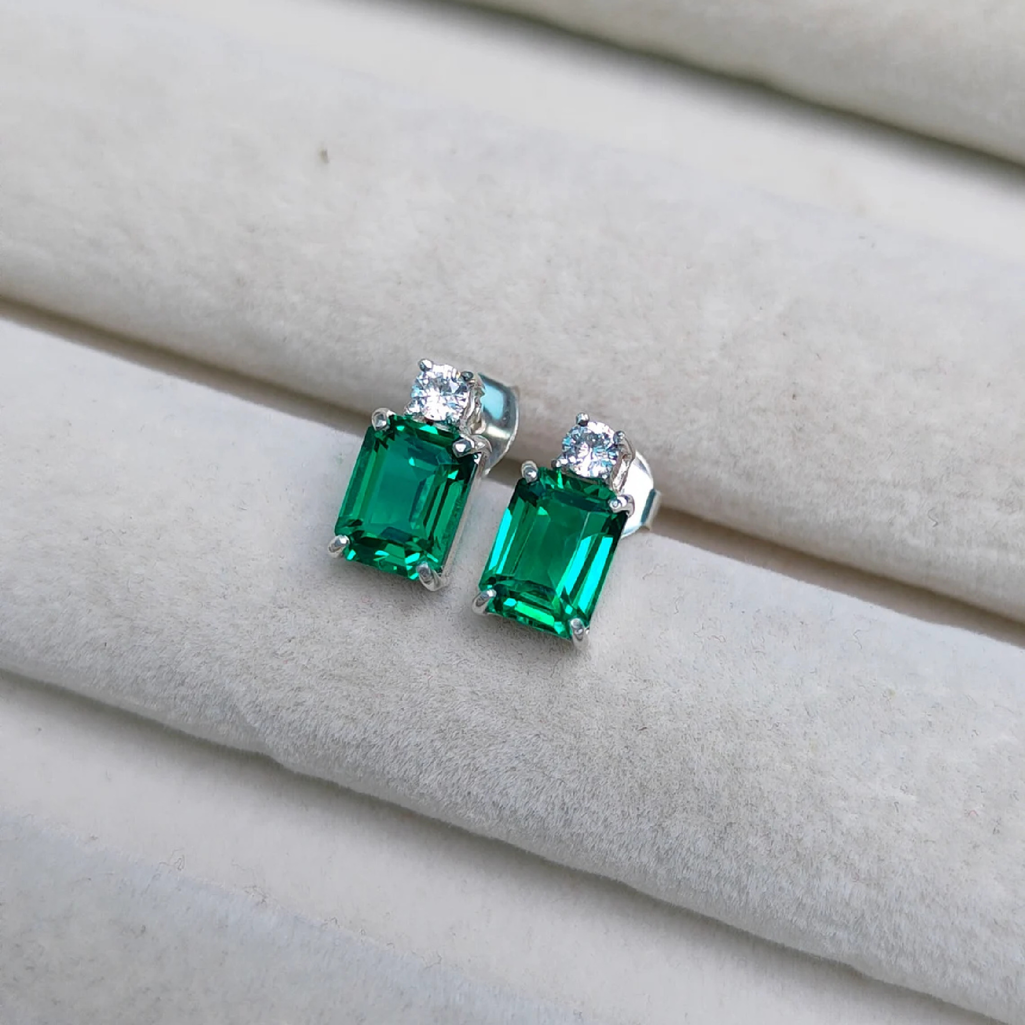 "Timeless Elegance: Emerald Cut Green Moissanite Diamond Stud Earrings"