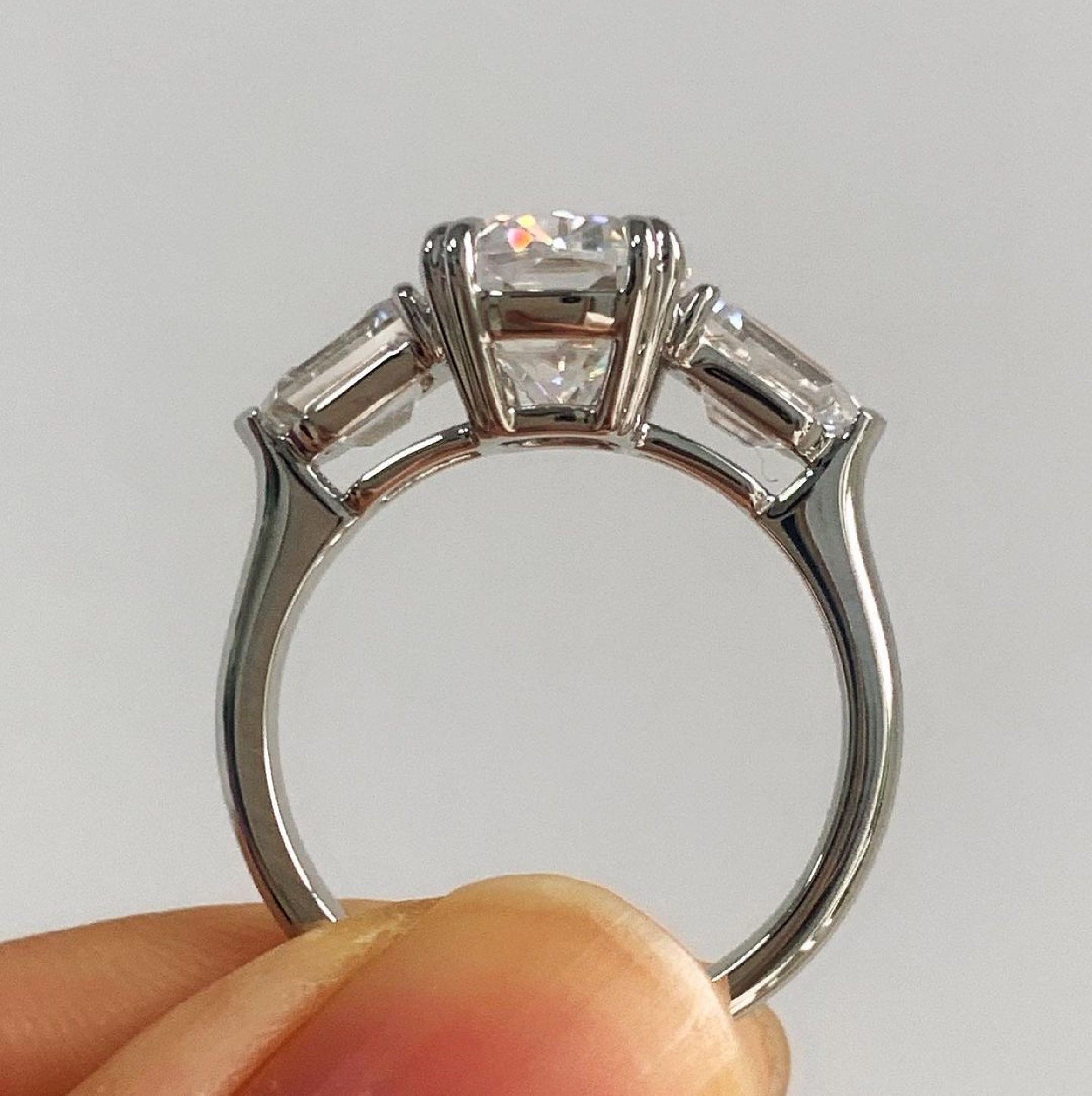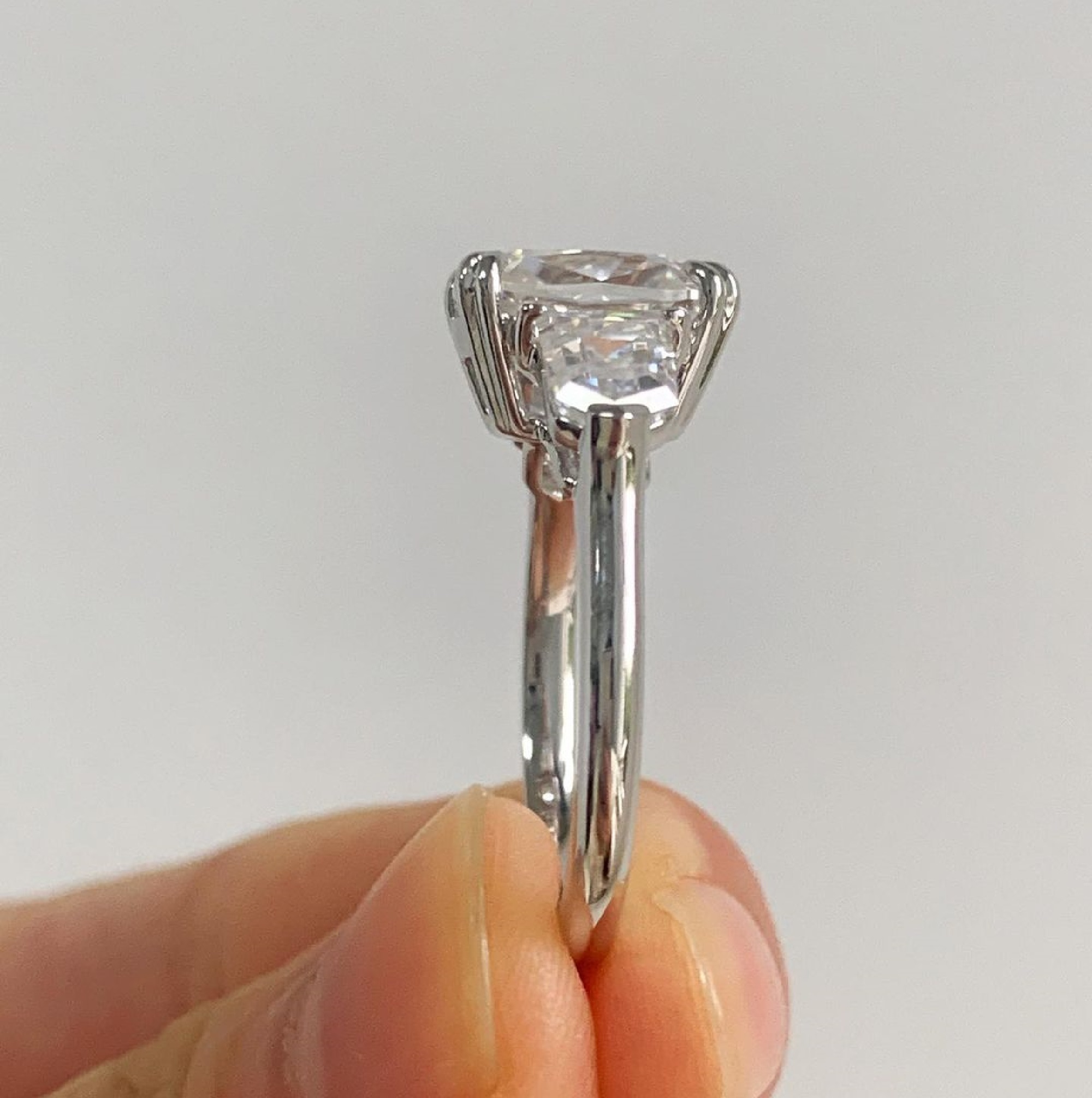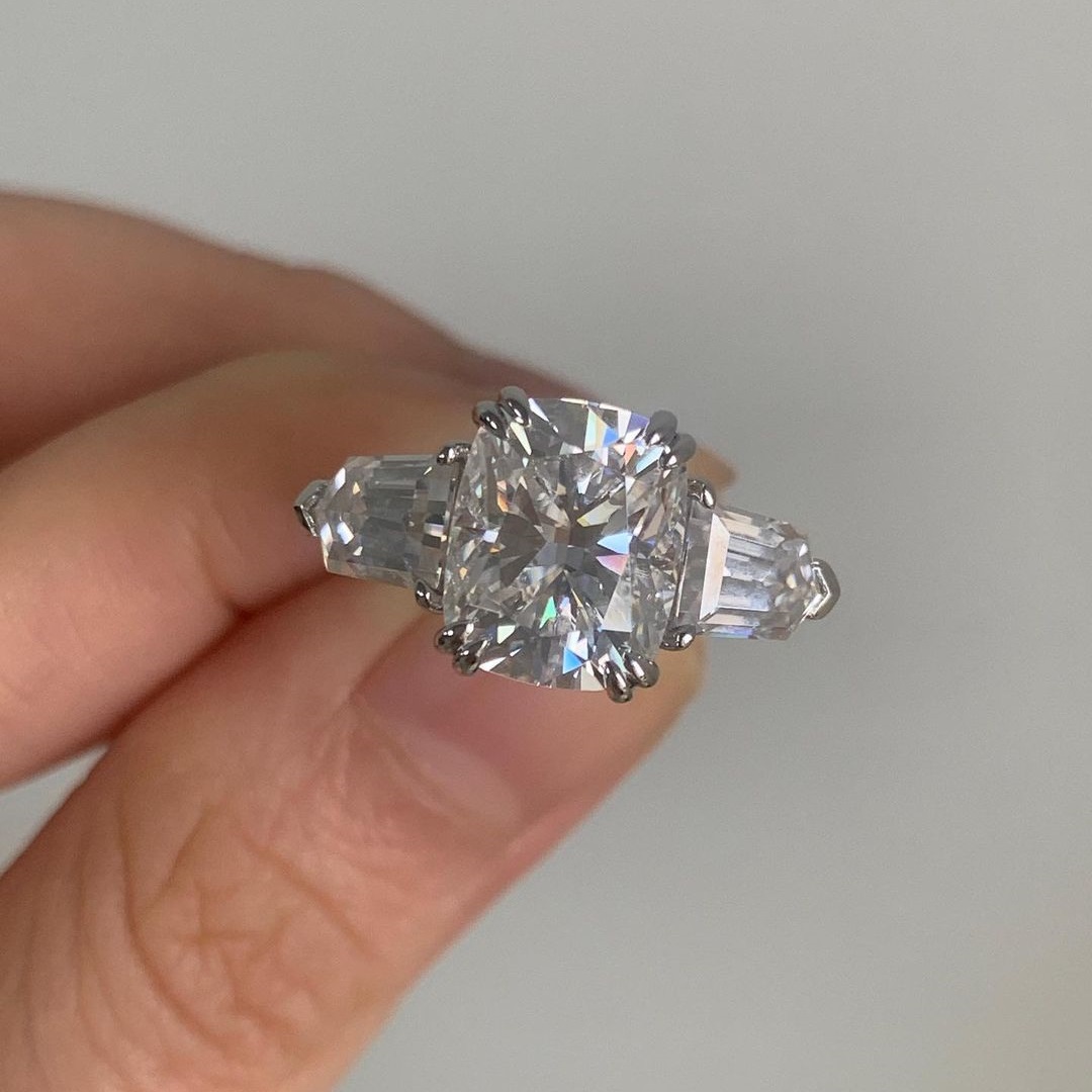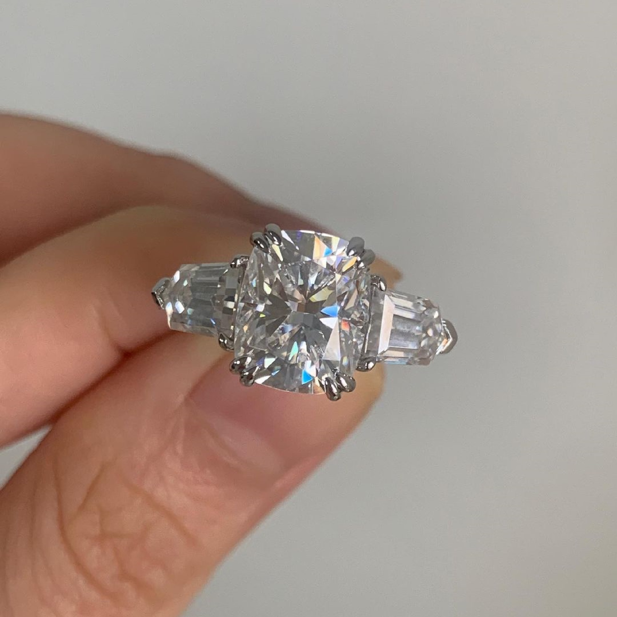"Cushion Cut Three Stone Moissanite Engagement Ring For Her"