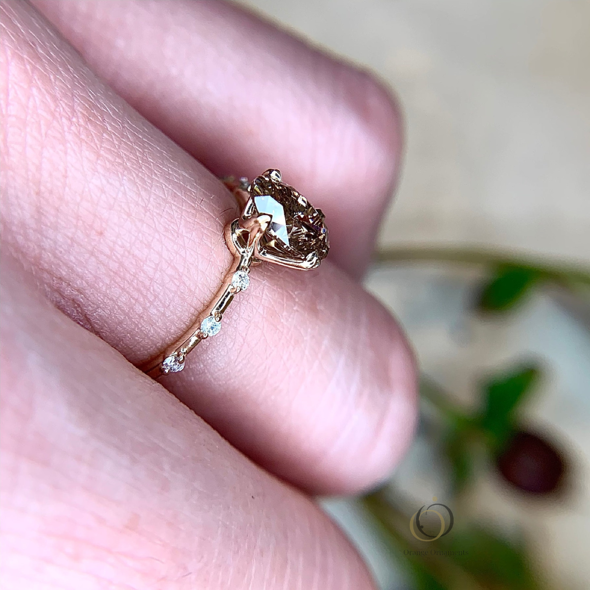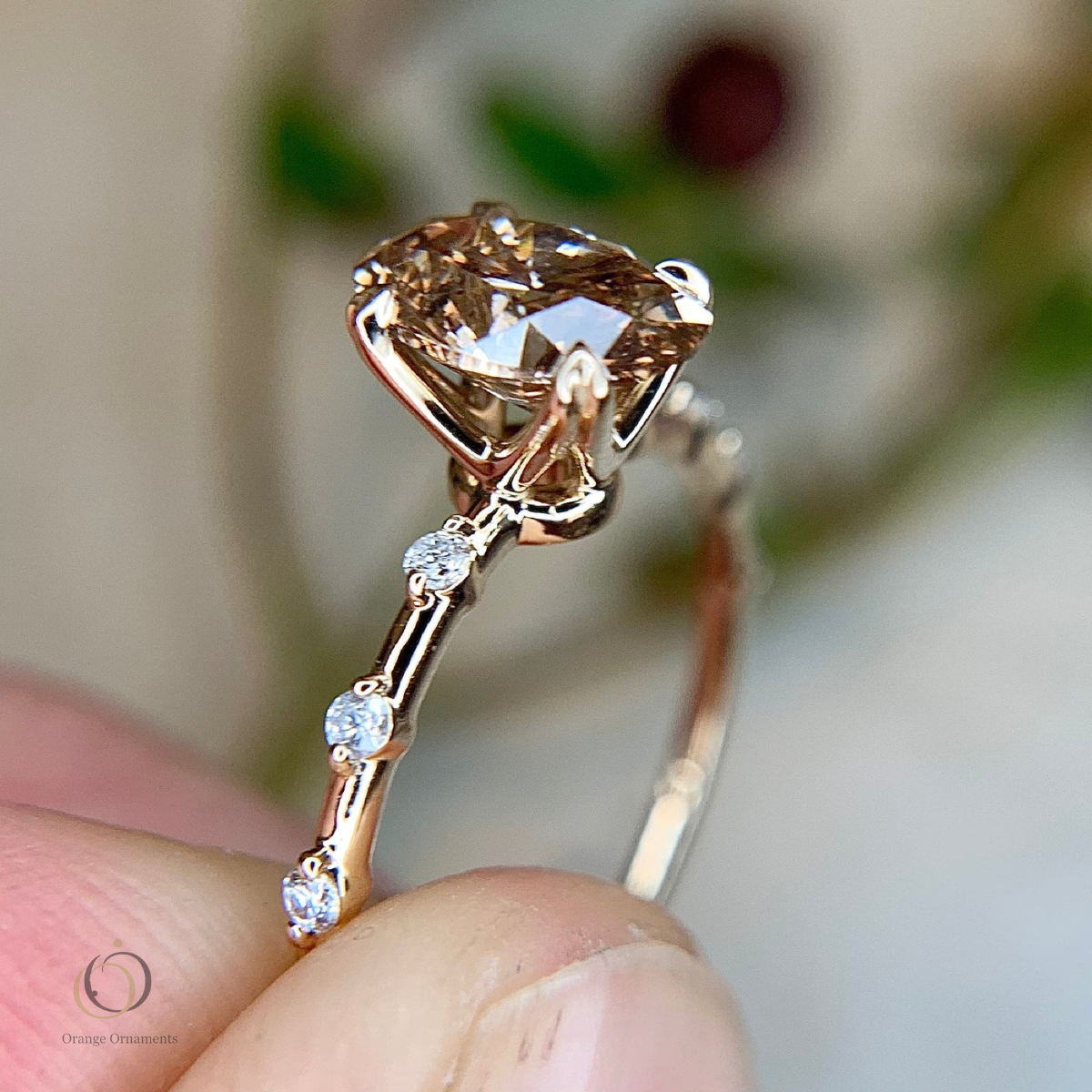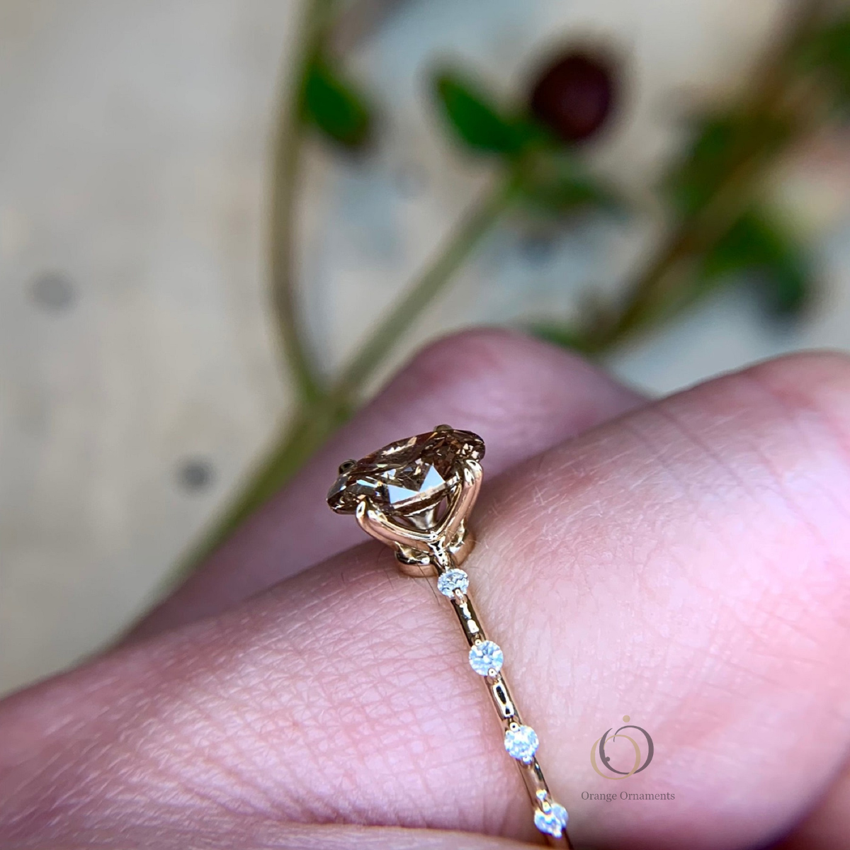 Elevate your love story with the enchanting allure of our 1.55 Ct Oval Cut Brown Moissanite Engagement Ring. This exquisite ring exudes Champagne elegance, featuring a captivating oval-cut brown moissanite center stone. The unique bubble band design adds a touch of whimsy to this sophisticated piece, making it a perfect choice for your wedding day. Celebrate your love with timeless style and sparkle.