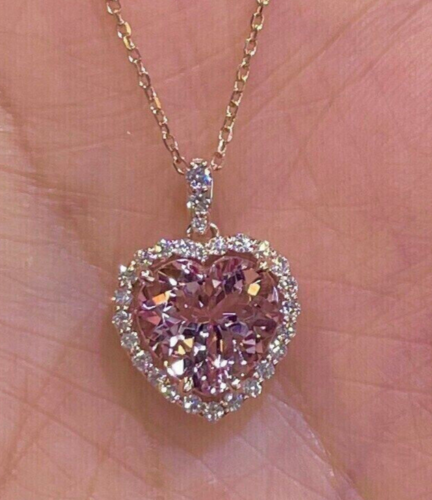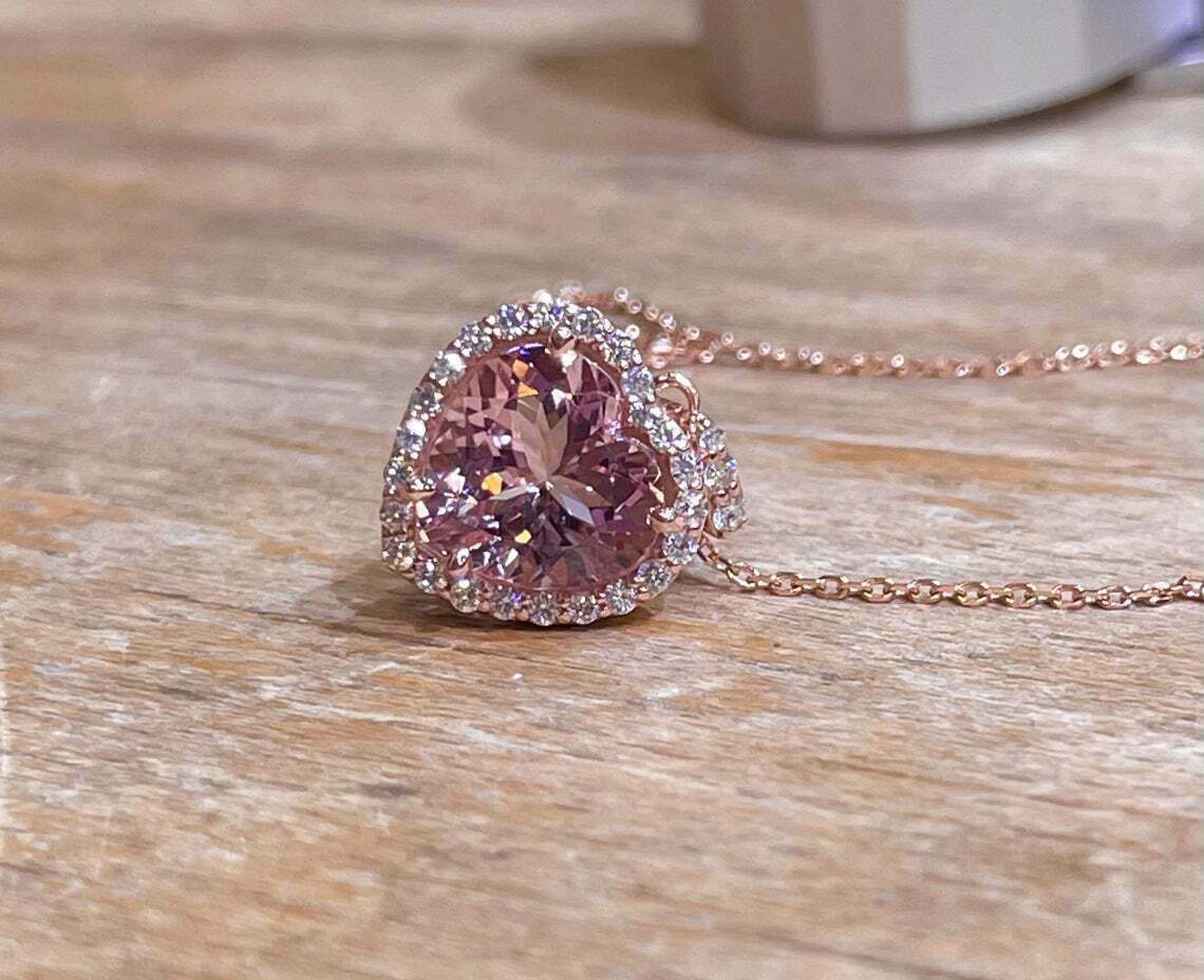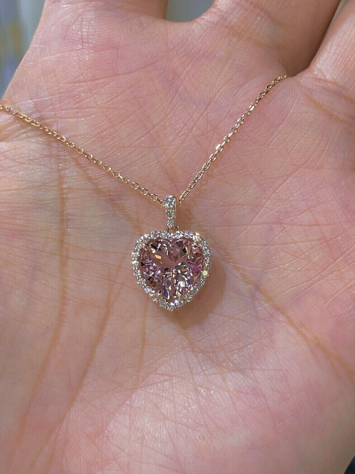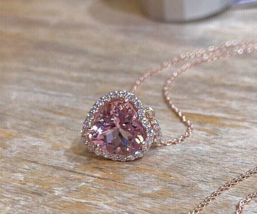 "Heart Cut Morganite and Peach Diamond Pendant in 14K Rose Gold Finish - Women's Pendant"