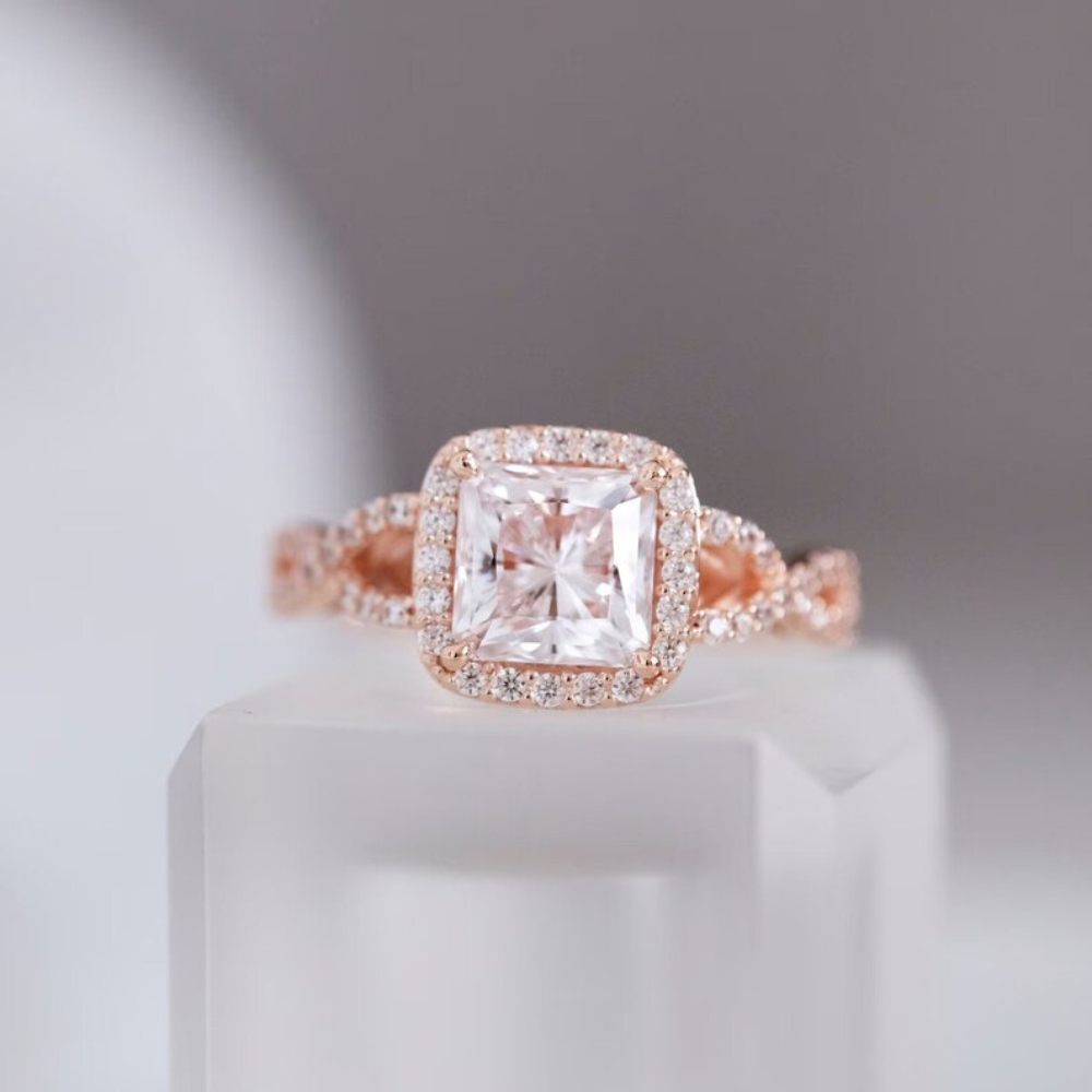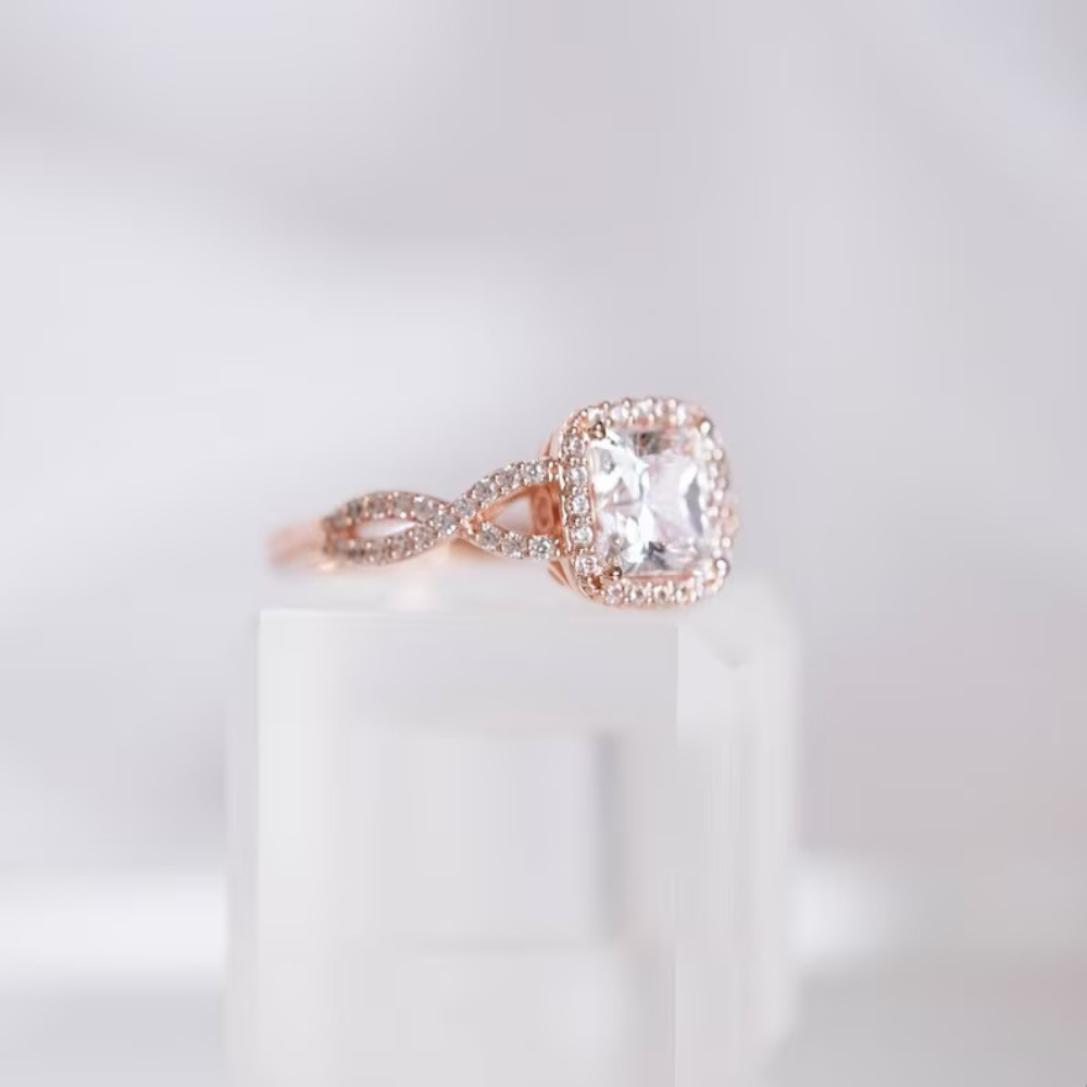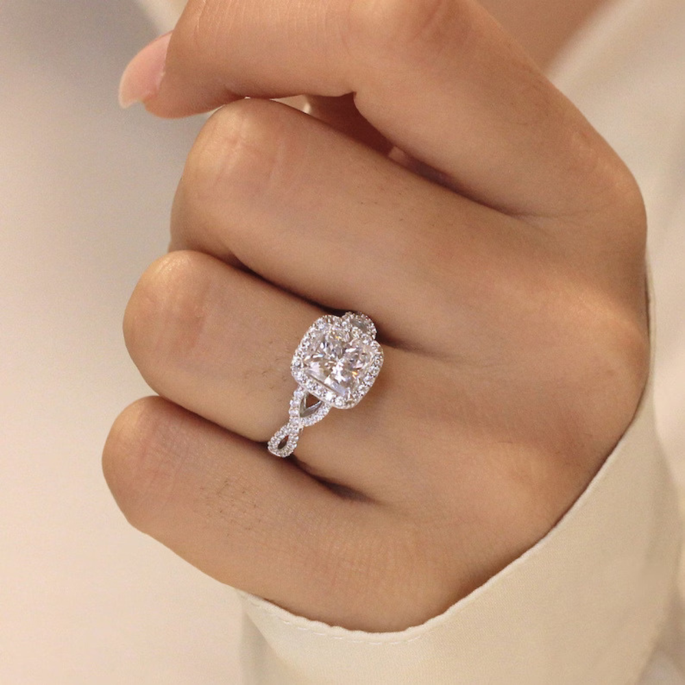 "Elegance meets timeless beauty in our Infinity Crossover Art Deco Engagement Ring. Adorned with Moissanite diamonds and featuring a cushion cut, it's the perfect symbol of love. Ideal for Valentine's Day gifting."