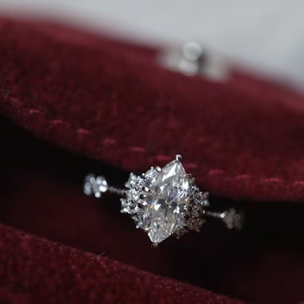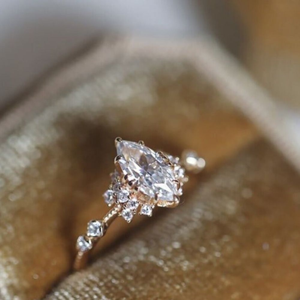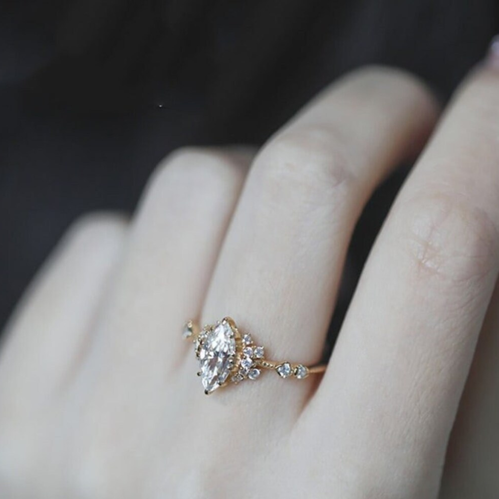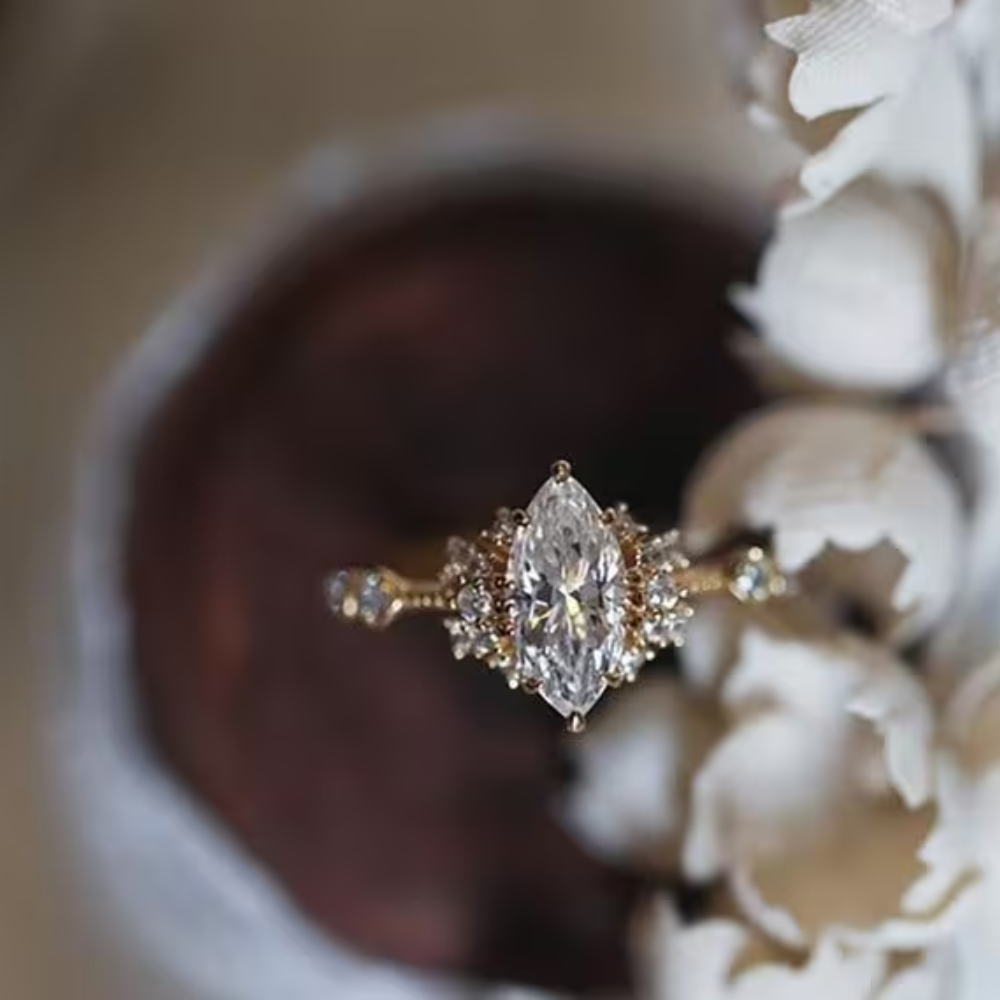 "Elevate your love story with our Unique Marquise Diamond Simulant Ring. Crafted in Sterling Silver 925, it's a stunning statement piece, perfect for engagements or promises."
