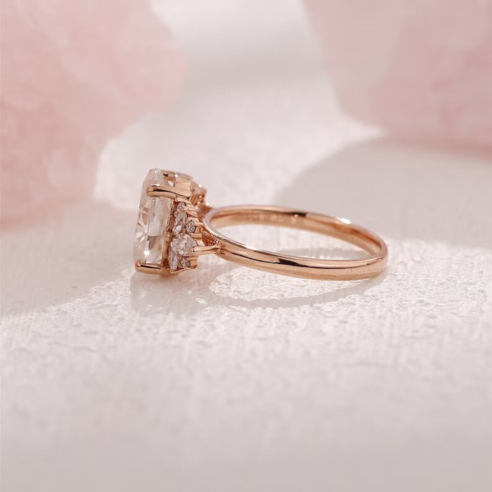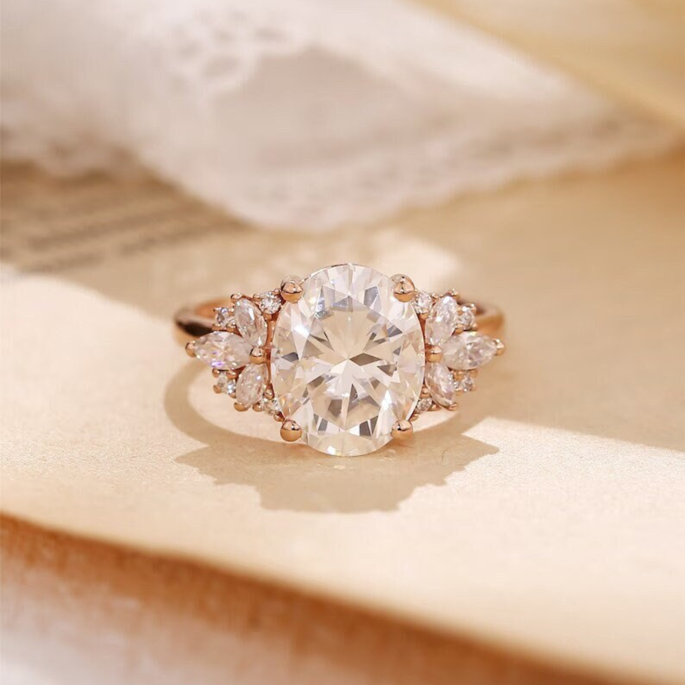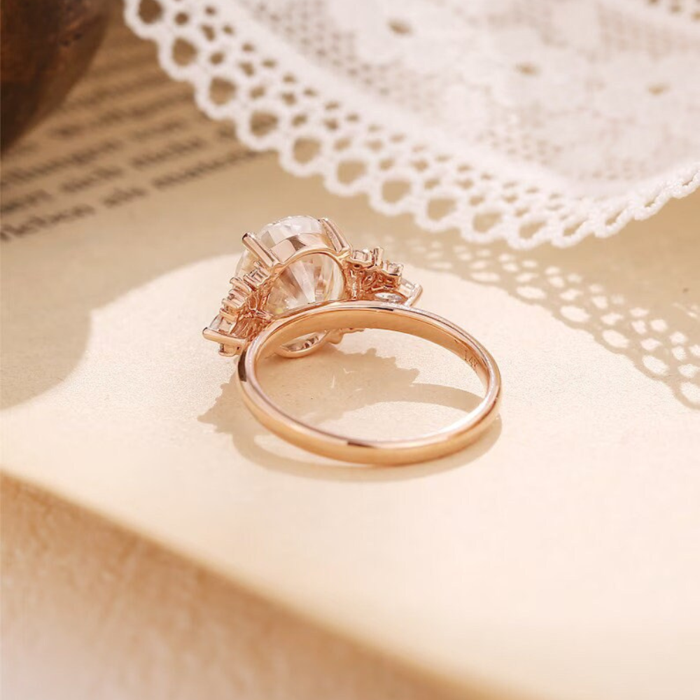 "Elegance meets uniqueness in our Art Deco Vintage Moissanite Three Stone Engagement Ring. Crafted in your choice of 925 Sterling Silver, 10K, 14K, or 18K solid gold, this ring is a stunning symbol of love and commitment."
