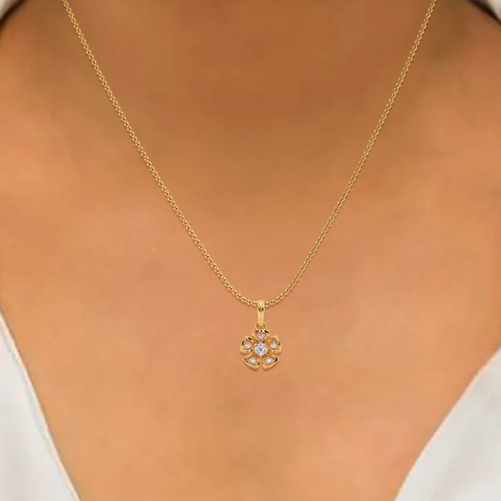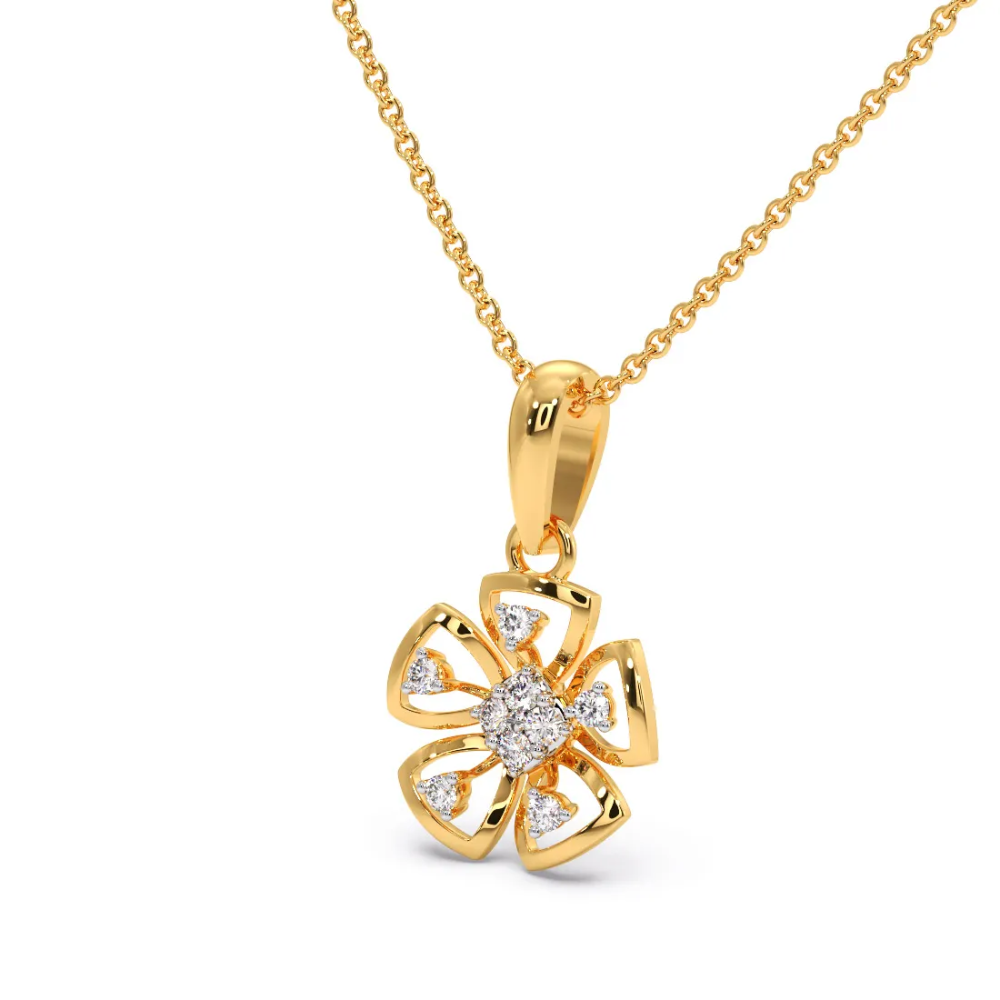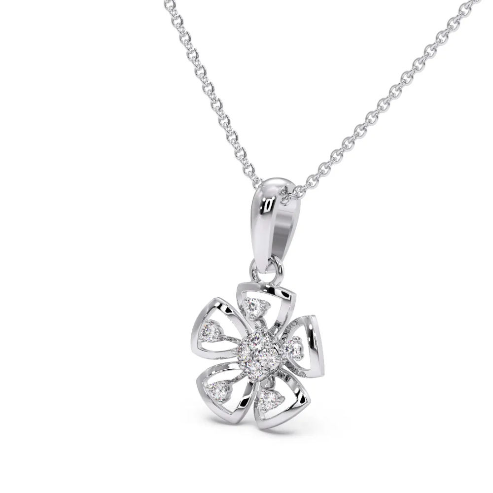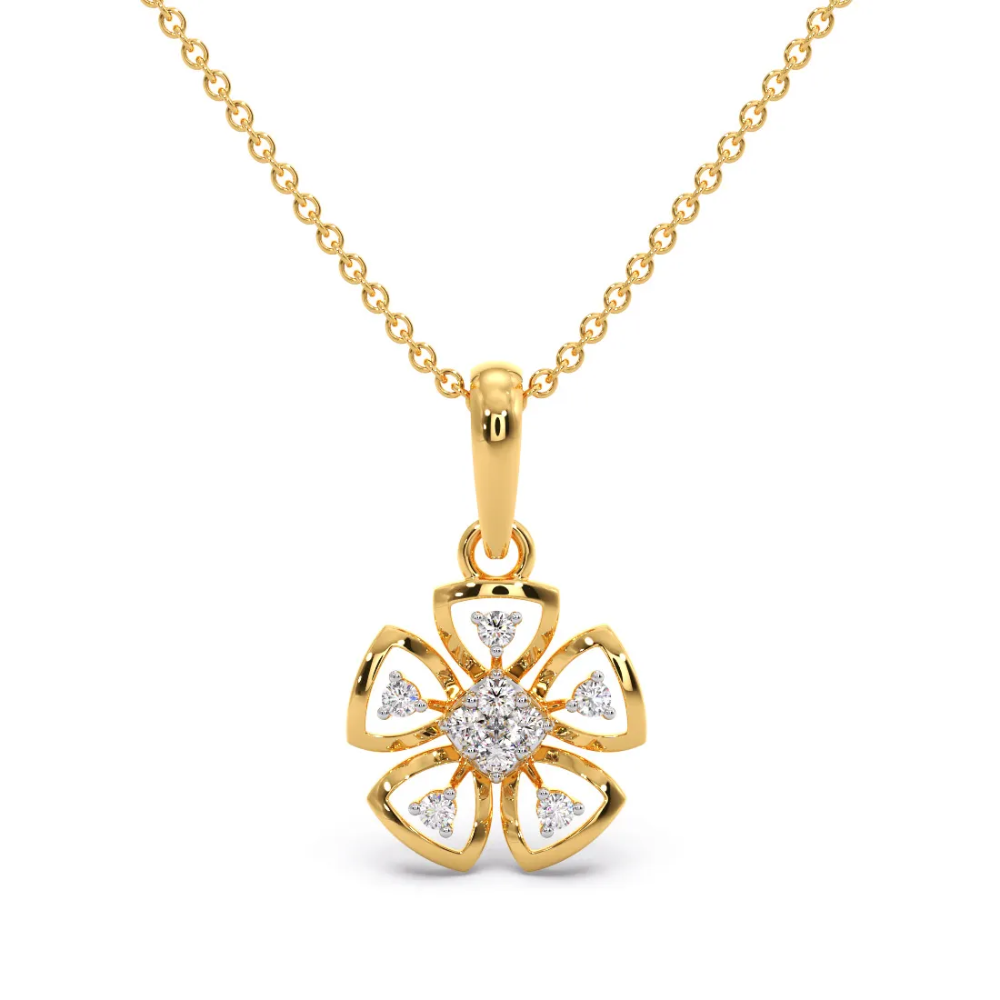 "Illuminate your look with the captivating Radiant Solange Floral Diamond Pendant. Its graceful floral motif and sparkling diamonds add a touch of nature's beauty to any occasion."